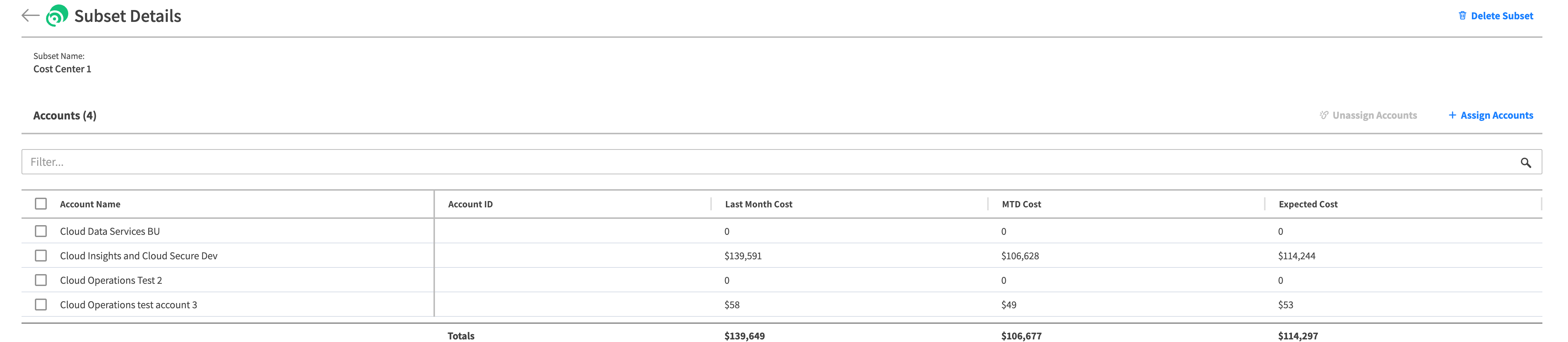 - Expected monthly cost: Estimated amount you will owe the cloud provider for this subset at the end of the current month.
