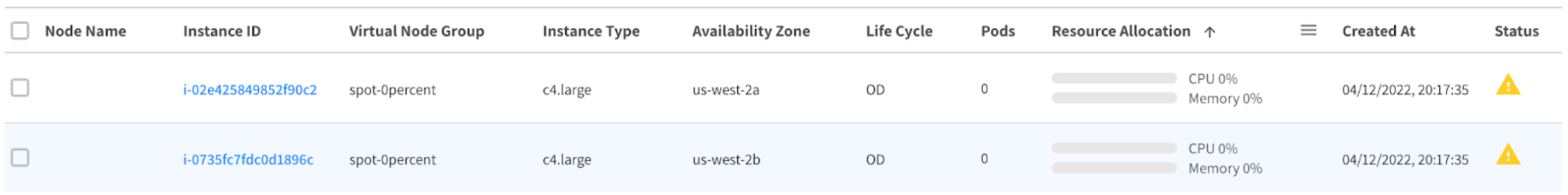 - Go to the Nodes tab in your cluster’s page in Ocean.