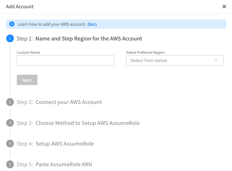 Paste the value of the AssumeRoleArn copied from the output of the stack and click Add Account.