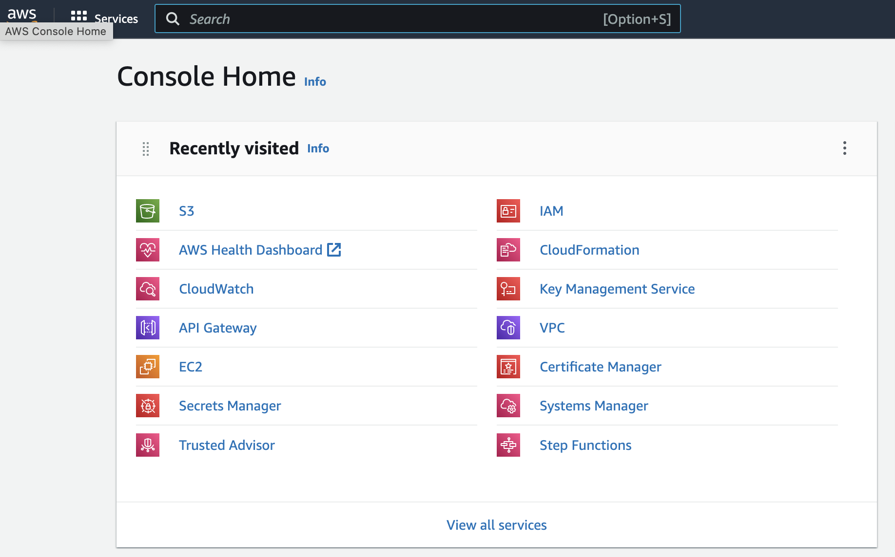 Click Log in to AWS Account link. The AWS console opens in a separate tab in your browser.